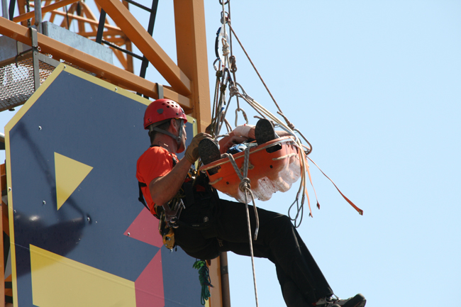 L'objectif était de porter secours au grutier atteint d'un malaise. L'opération a consisté à atteindre la cabine du grutier au sommet de la grue, en extraire le grutier, lui porter les premiers secours et l'évacuer du site.